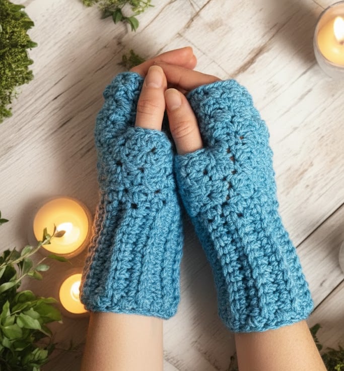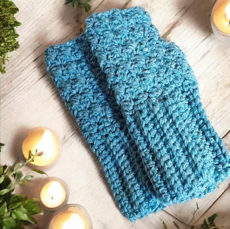 Handmade Crochet Blue Fingerless Gloves – Cosy Winter Wrist Warmers
