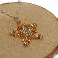 This chic and stunning pendant has been made using white and silver seed beads and bugle beads and a delicate trace silver chain.
