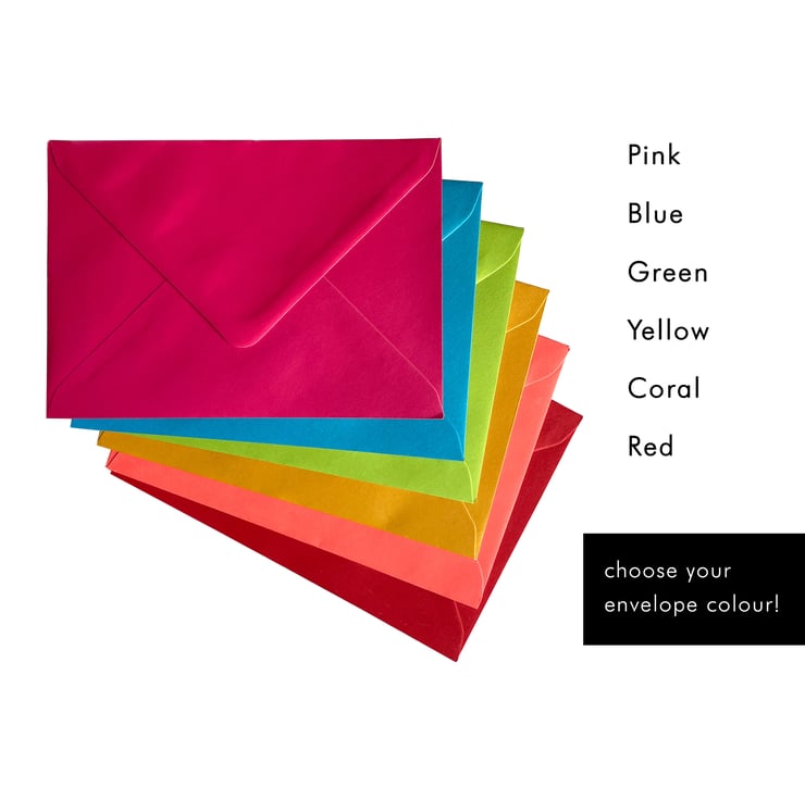 Perfect for romantic Valentine’s Day messages or for showing pride and support, this card is a stylish and heartfelt way to express your feelings. Paired with your choice of six colourful envelopes, it’s easy to add a personal pop of colour to your message. The blank interior gives you space to write a thoughtful, heartfelt message that will be cherished.