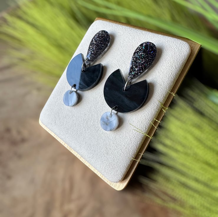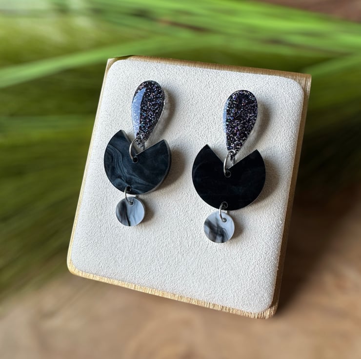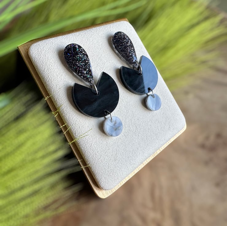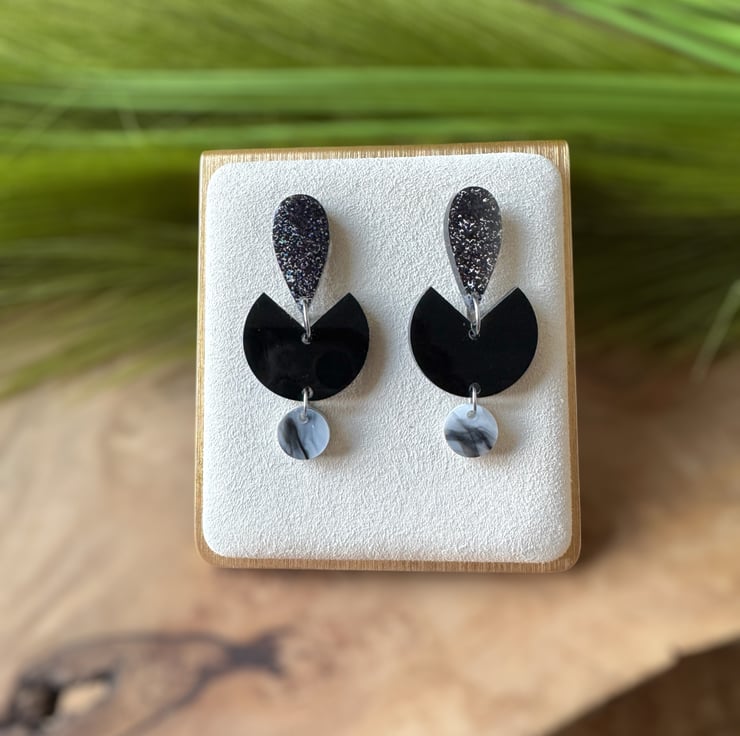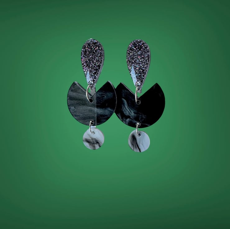 With black marble laser cut abstract half moon acrylic centre,