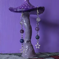 Hand painted pot featuring a magical array of flowers, mushrooms, candles and creatures all surrounded by stars.