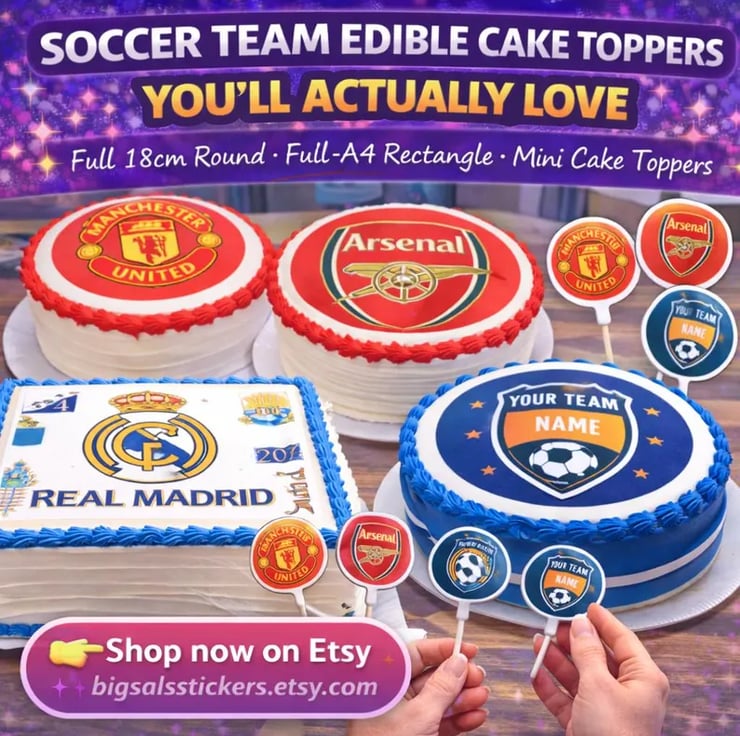 Celebrate match day, cup finals, birthdays or end-of-season parties with a fully custom sports-themed edible cake topper.