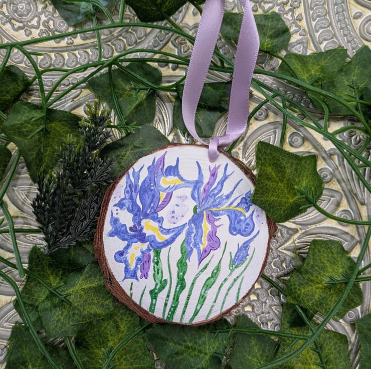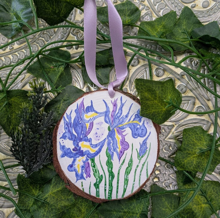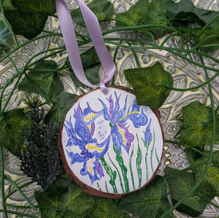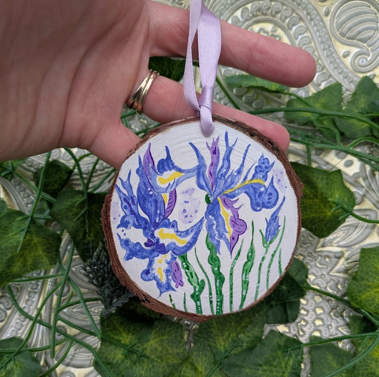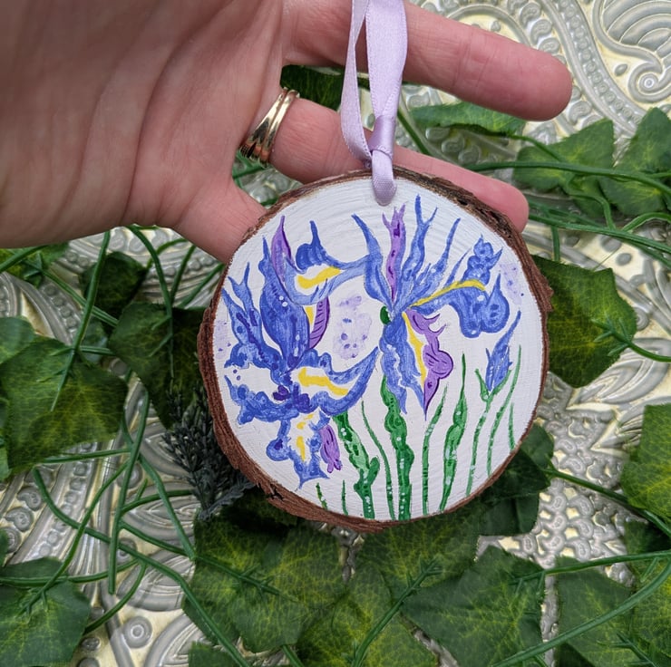 This beautiful hand-painted Iris wood slice would make a lovely, unique gift for anyone celebrating a February birthday as irises are the birth flower for this month.