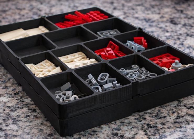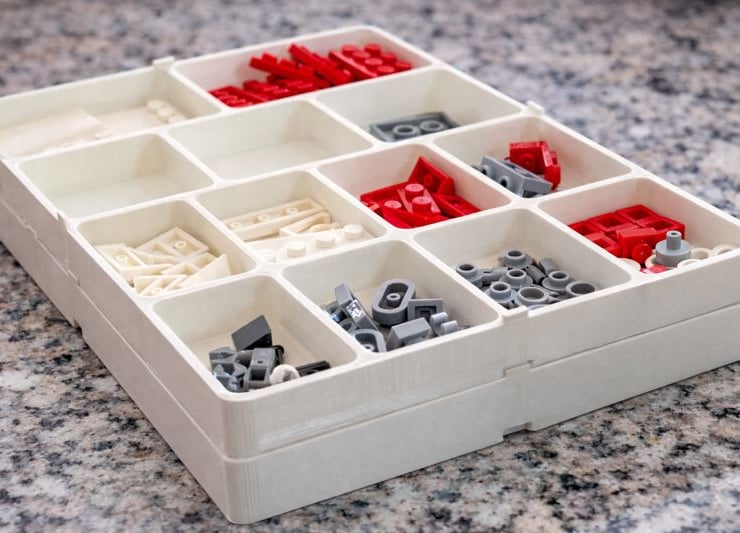 This stackable sorting tray is a handmade, 3D printed organiser designed for efficient storage and easy access to small parts. It is ideal for sorting items such as hobby components, model parts, screws, craft supplies, electronics, or workshop accessories. The low-profile design allows multiple trays to be stacked neatly, saving space while keeping everything clearly organised.