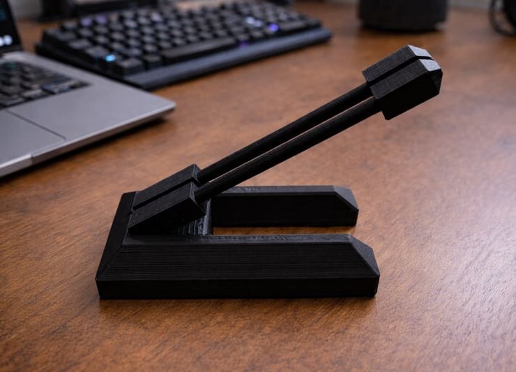 Each holder is handmade to order using high quality 3D printing materials, ensuring a solid, durable finish with clean lines and consistent strength. The weighted base provides stability during use, while the compact footprint makes it ideal for desks of any size, whether at home, in the office, or in a gaming setup.