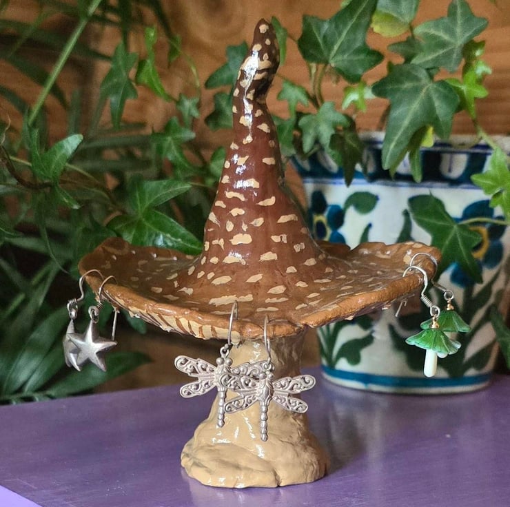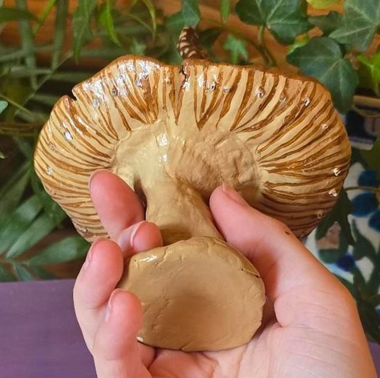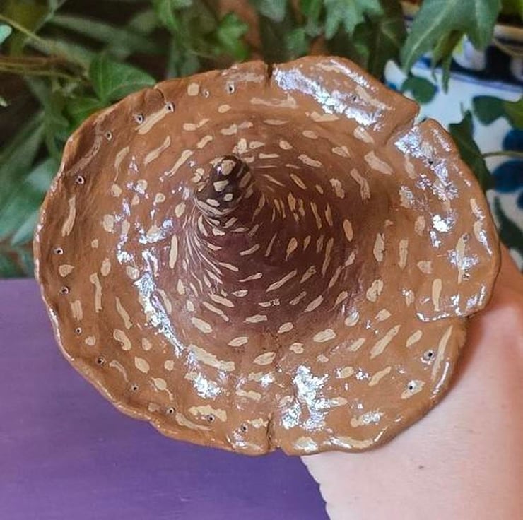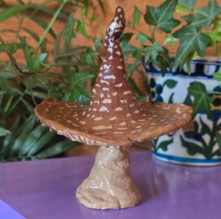 handmade with air dry clay and handpainted with acrylic paint then sealed with gloss varnish.