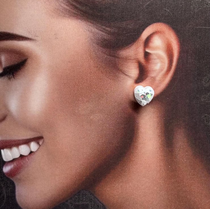 White & Silver Glitter Heart Stud Earrings Minimalist Handmade Earrings Jew