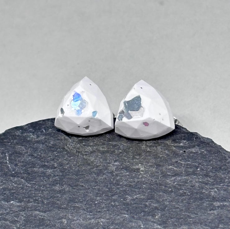 Made using eco-friendly clay, these studs are a great choice for those who love stylish jewellery while being mindful of the planet. The soft matte white base has shimmering silver glitter, creating a clean, modern look that pairs effortlessly with any outfit.
