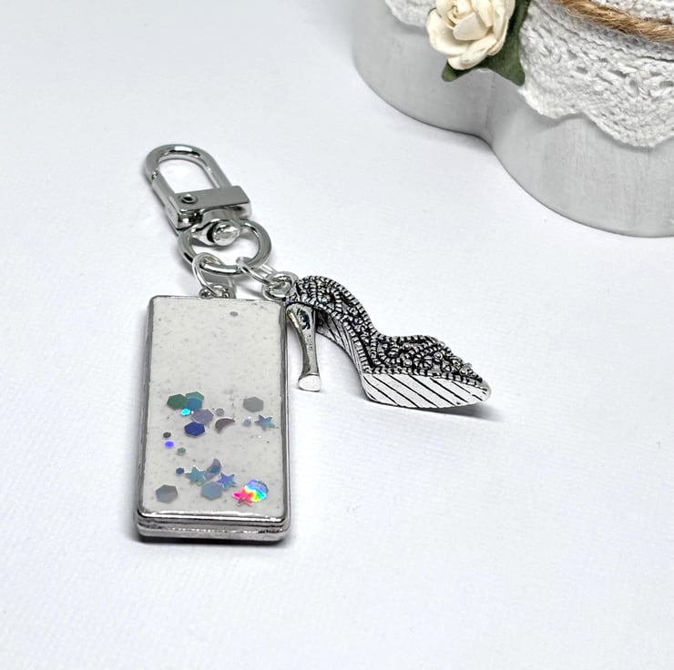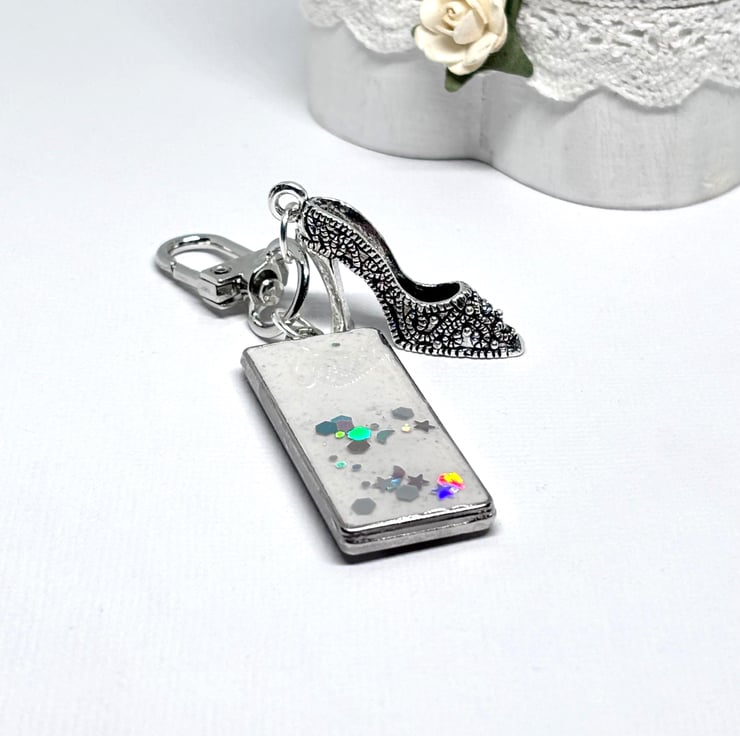 Add a bit of sparkle to your everyday accessories with this Rectangle Glitter Bag Charm, designed to double as a stylish shoe charm or keyring. Handmade with high-quality resin and shimmering glitter, this sleek rectangular charm catches the light beautifully while remaining lightweight and durable.