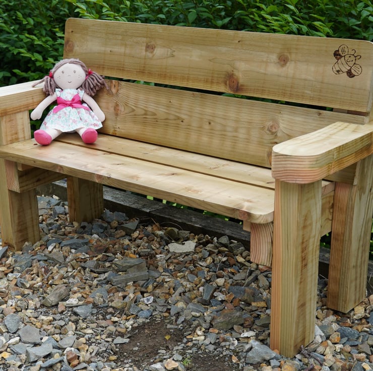 Each little bench is made to order so it will be hand-crafted with your little person in mind. Please message us for a different image to be pyrographed into the top right corner if our grandchildren's personal favourite of a smiling bee is not for you.