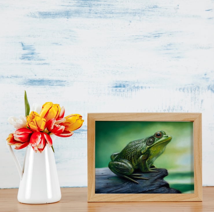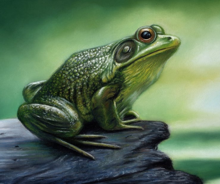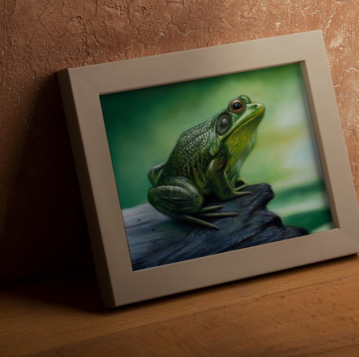 A portrait of a frog in soft pastels. This is an original work of art. A unique, one-of-a-kind gift.