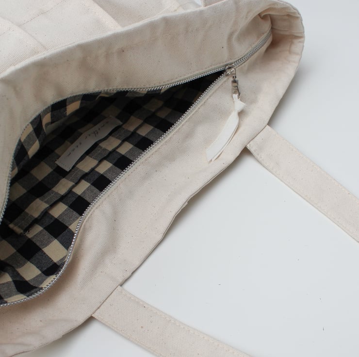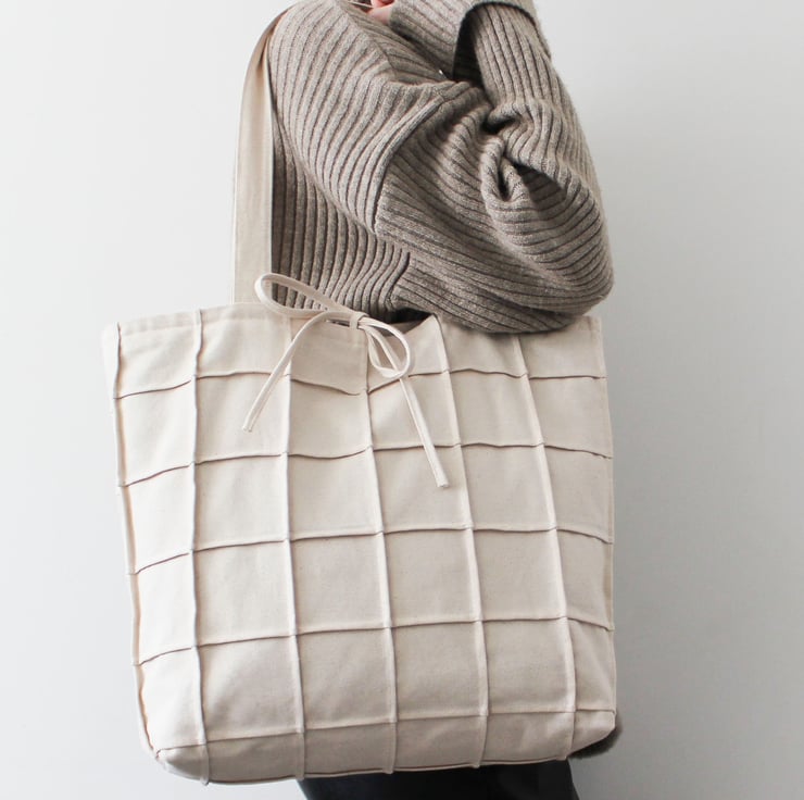 The Frances tote bag presents a unique checked pin tucking technique handmade using 100% organic cotton durable fabric and a bestseller for anotherseam!