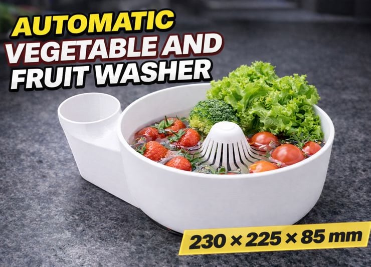 This Automatic Vegetable and Fruit Washer is a practical kitchen accessory designed to make washing produce quicker, cleaner, and more efficient. The bowl and integrated strainer system allows water to circulate freely around fruit and vegetables while helping lift dirt and debris away, making everyday food prep easier and more hygienic.