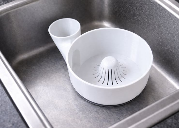Each unit is handmade and 3D printed to order, ensuring consistent quality and careful attention to detail. The smooth internal surfaces are easy to rinse clean, while the integrated funnel and strainer design helps manage water flow neatly during use.