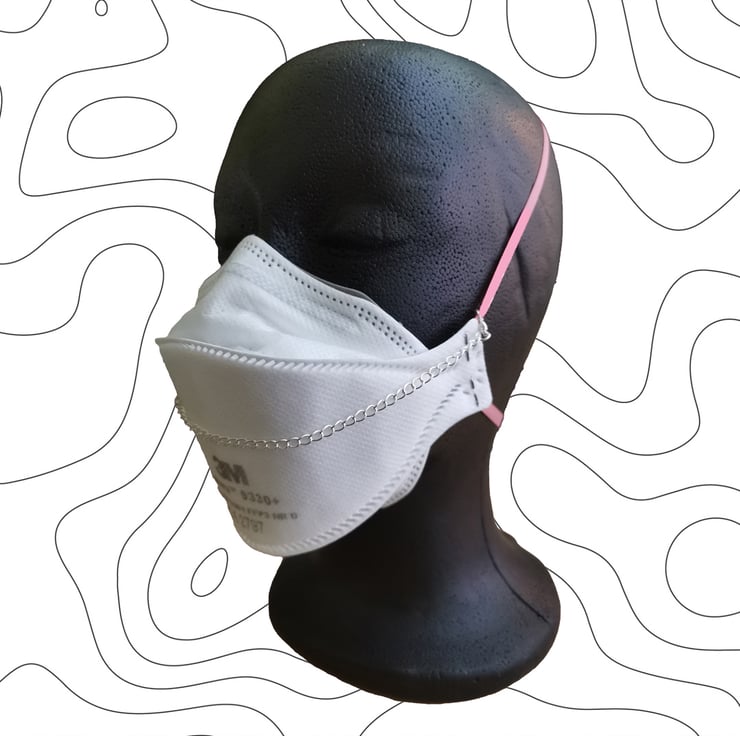 Mask chains are a great way of dressing up your mask, coordinating it with your outfit, or just making your respirator feel more 'you'. This lightweight silver plated mask chain features a 2.5cm wide charm in the shape of a caffeine molecule. 24cm long as standard, or I can adjust it to your own measurements (recommended - see below!)