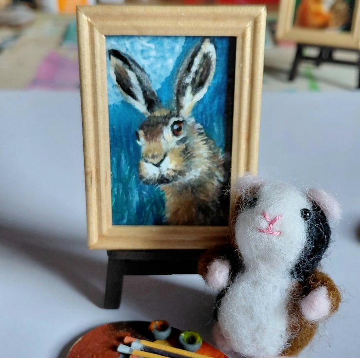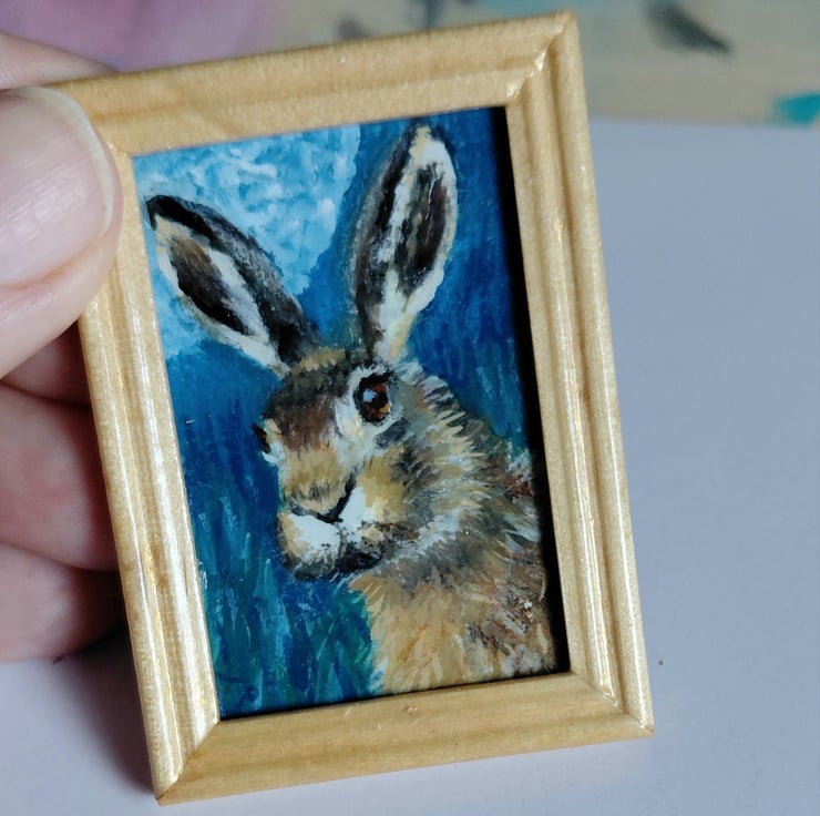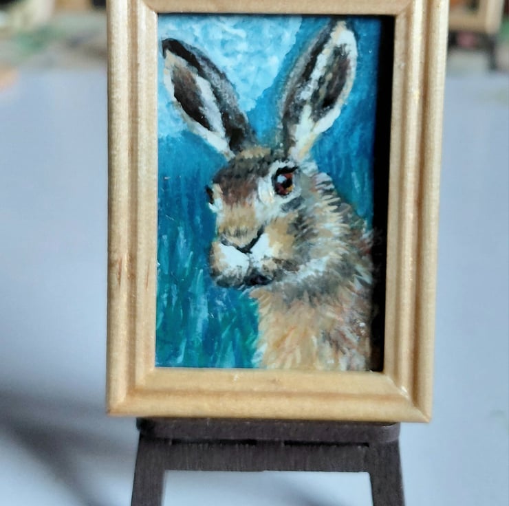 An original oil painting 'Moonlit Hare' Miniature Painted by Traceyann Papworth.