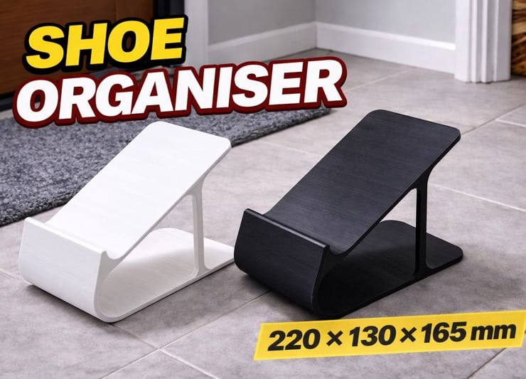 Keep your hallway, bedroom, or wardrobe neat and organised with this 3D printed Shoe Organiser, designed to neatly stack shoes and maximise storage space. Ideal for trainers, casual shoes, and everyday footwear, this organiser helps reduce clutter while keeping pairs easy to access.