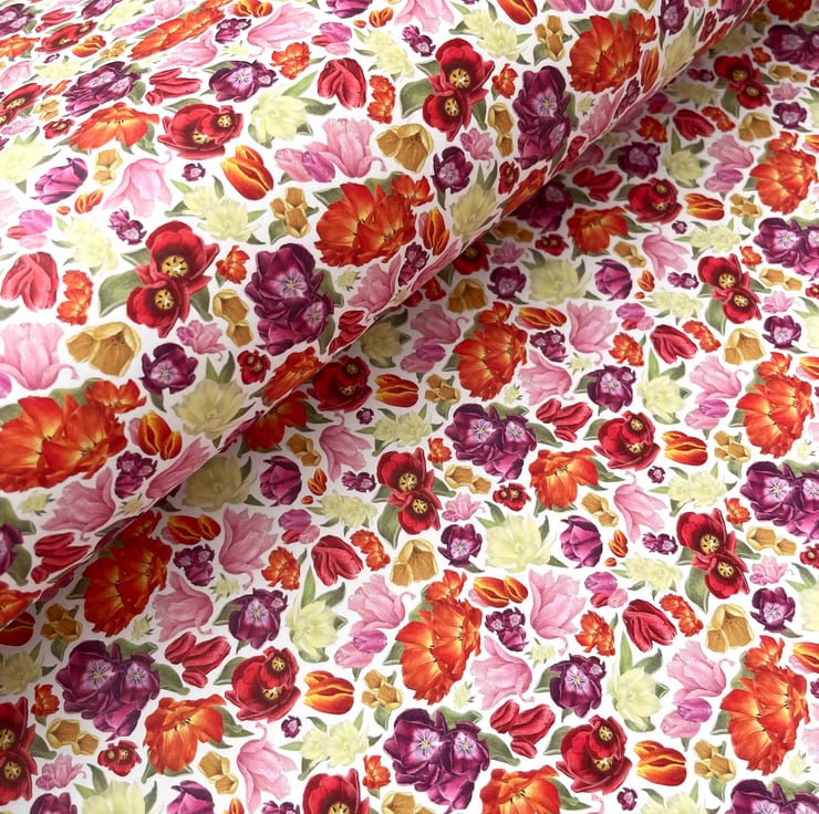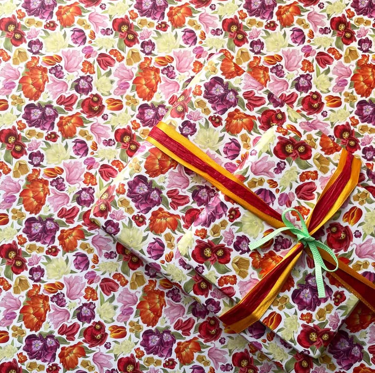 Celebrate the beauty of spring with this charming tulip gift wrap and matching gift tag, featuring intricately hand-drawn flowers in bold, joyful colours. Set against a crisp white background, the vibrant hues of pink, yellow, orange and purple create a fresh, uplifting design that instantly brightens any present.