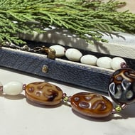 The white vintage beads were the inspiration for this bracelet. A beautiful crisp white that needed offsetting with another colour. I chose that lovely pink. And this gorgeous and unusual shapes !