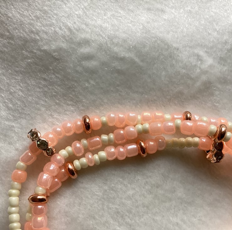 This beaded string made from different beads , metals ones, plastic ones, different charms ,colours and textures.
