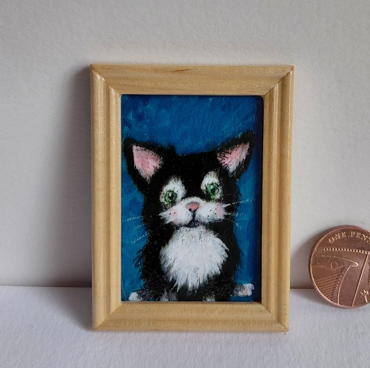 My beautiful childhood cat Tufty was the inspiration for this painting. I was the only person he would cuddle up to!