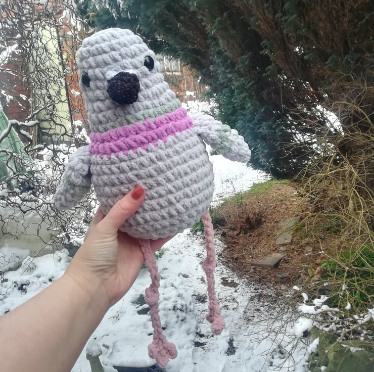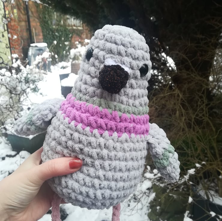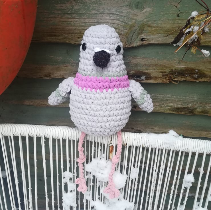 This lovely large crochet pigeon is made from a soft blanket yarn so is lovely and squishy.