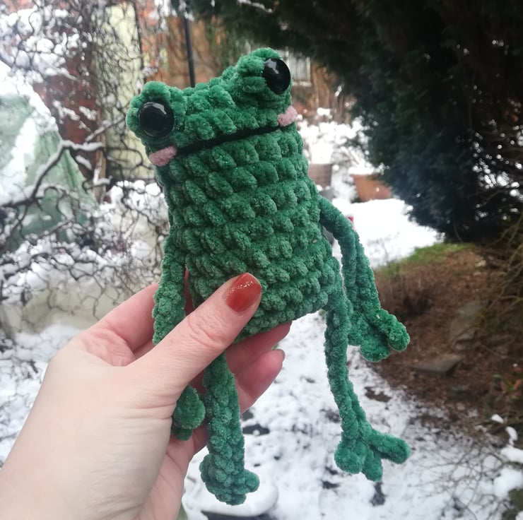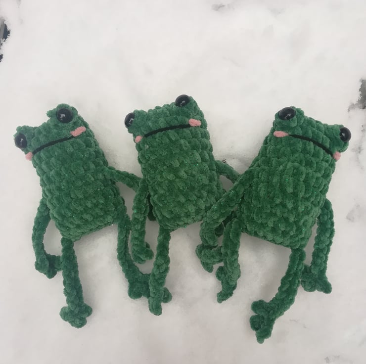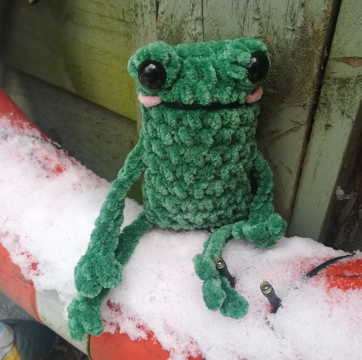 These crochet Stress frogs are made from a lovely soft yarn with a hint of sparkle.