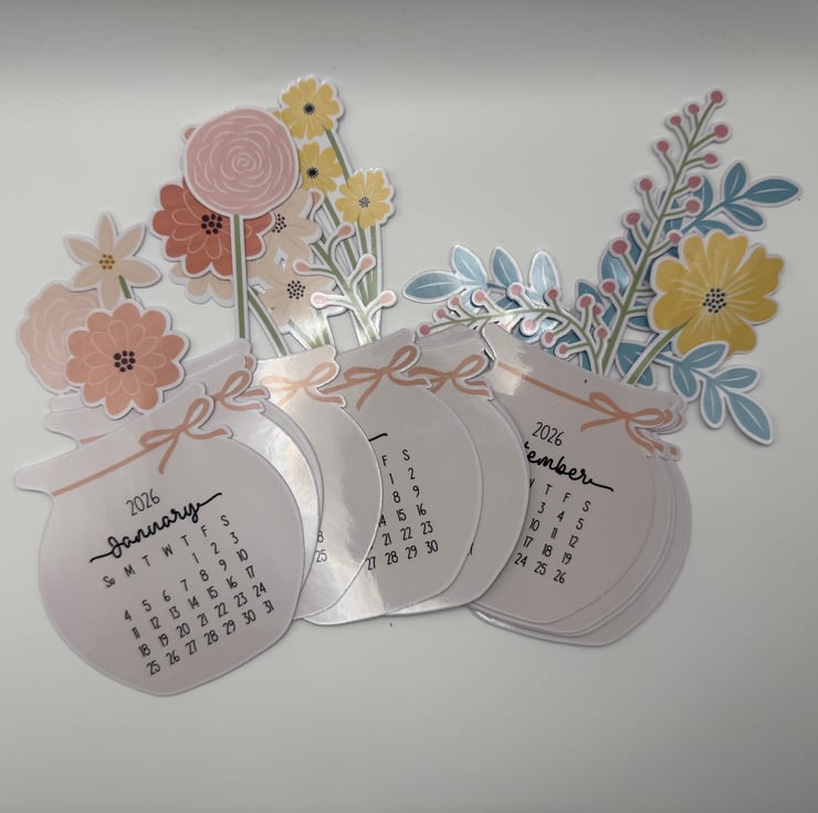 Designed with a sweet flower-in-a-jar illustration, this calendar is both functional and decorative, perfect for brightening up your workspace all year long.