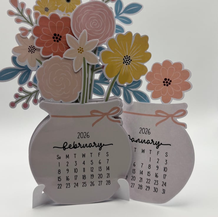 2026 Floral Desk Calendar – Cute Jar Flower Design, Handmade Table Calendar
