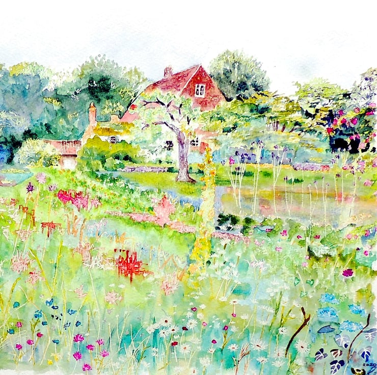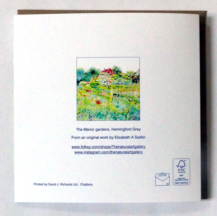 A set of four square 150mm x 150mm blank fine art greeting cards printed on FSC semi-gloss paper produced from images taken from my original watercolour flower and garden paintings