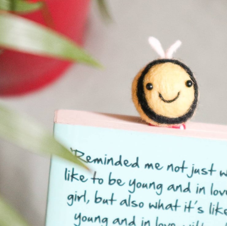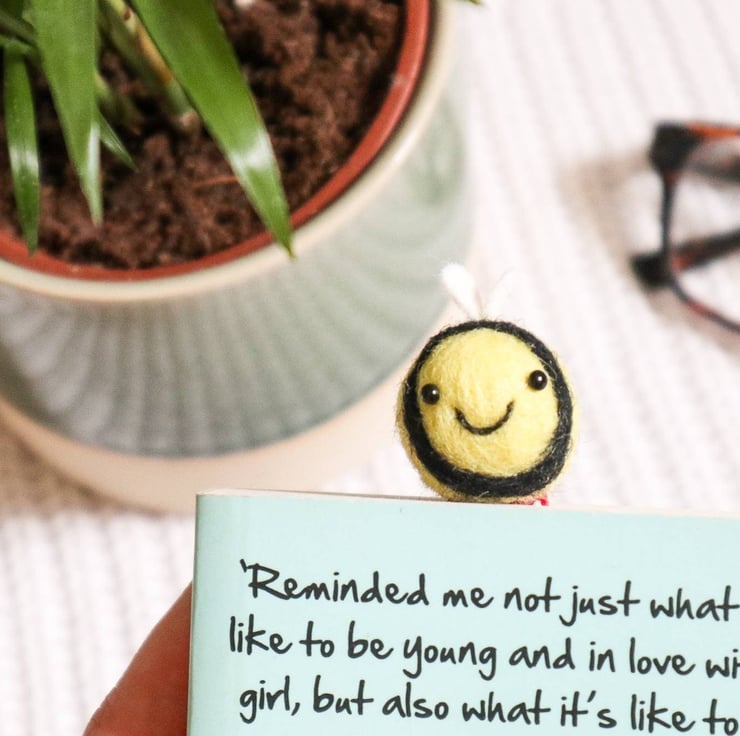 This smiley companion makes the perfect gift for any book lover and looks adorable peeping out of your favourite read! You also have the option to add a handmade pair of reading glasses to your bumble bee. Each bee is handmade to order so can differ slightly from the next.