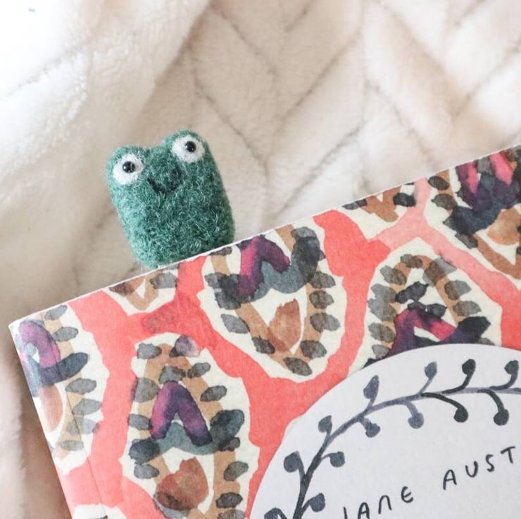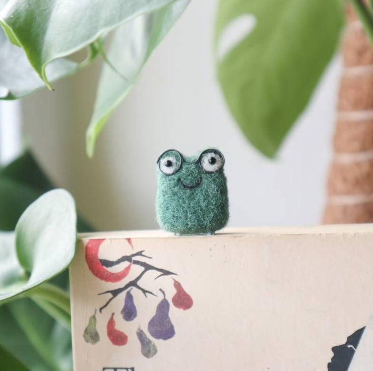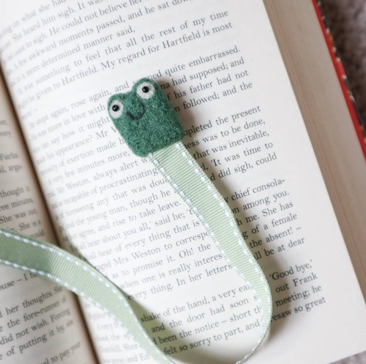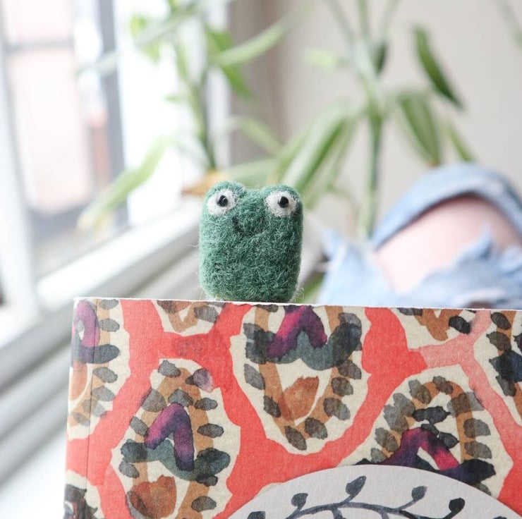 Woolly Mr Toad Bookmark - Needle Felt Felted Frog Handmade Wool Book Accessory