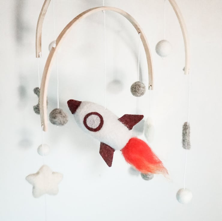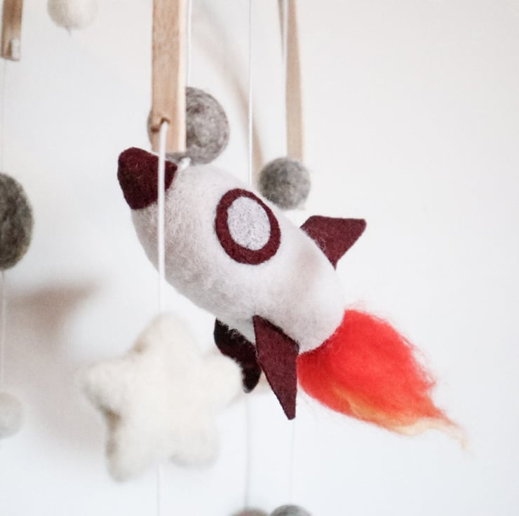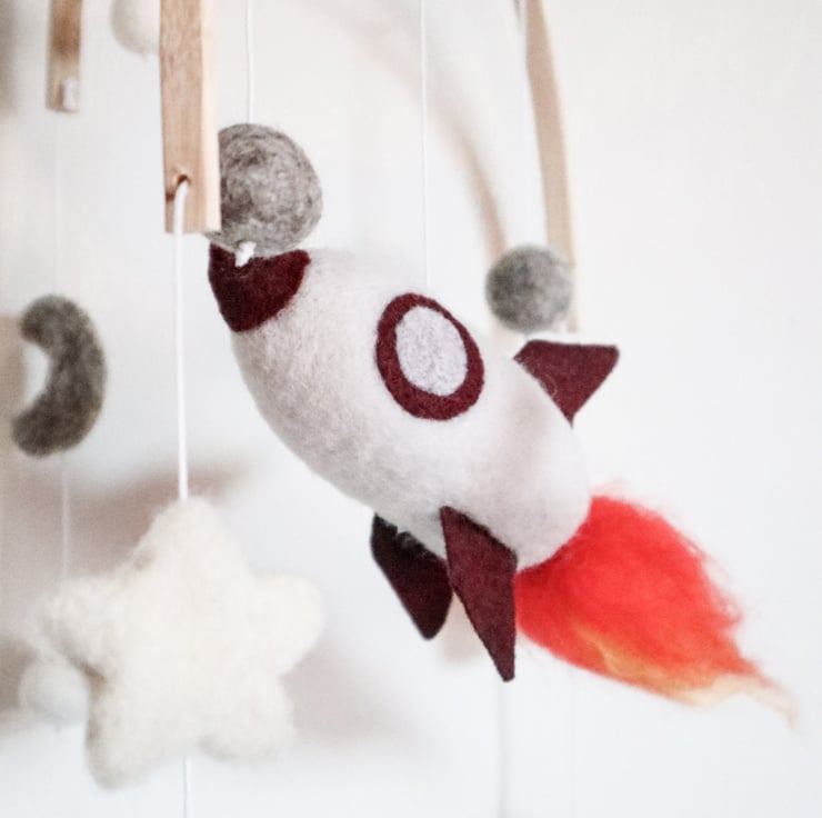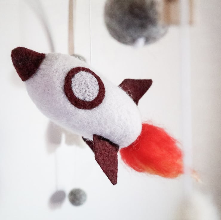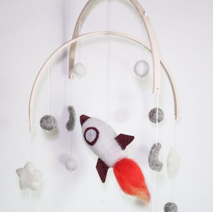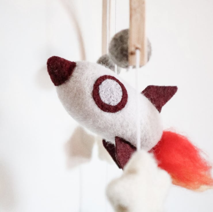 Rocket Mobile - Needle Felt Felted Handmade Nursery Decor Decoration Boys New Ba