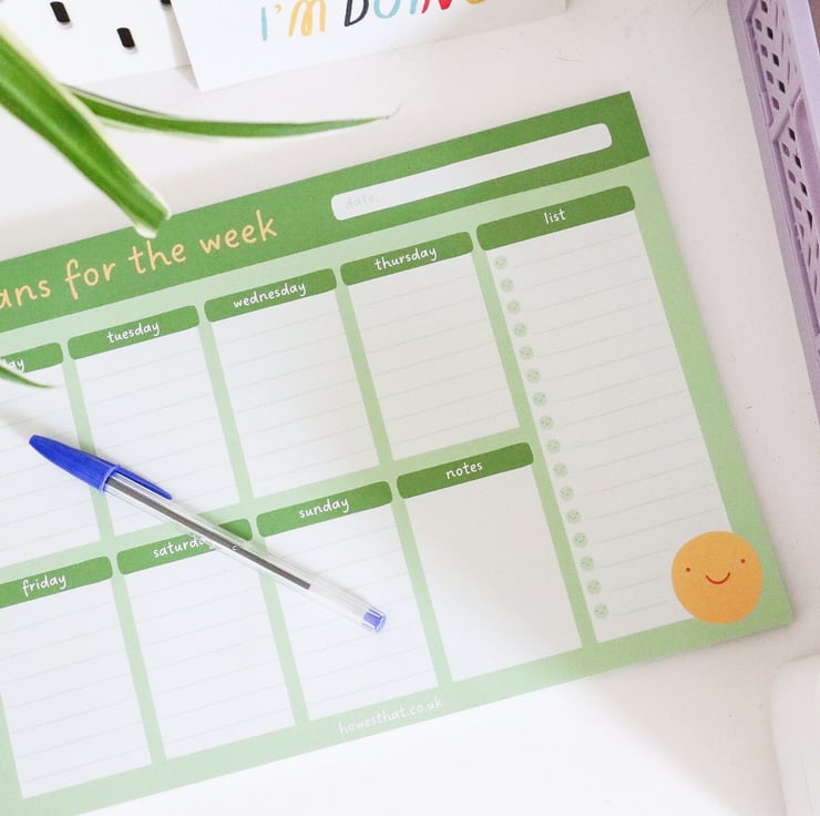 Is there anything better than having your week planned out?! Happy Weekly Planner is a great addition to your desk, perfect to plan your busy week.