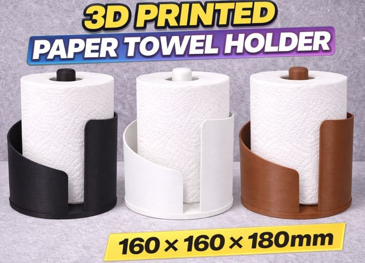 This 3D printed paper towel holder is a practical and stylish addition to any kitchen, utility room, workshop, or workspace. Designed to securely hold standard kitchen roll sizes, it keeps paper towels upright, accessible, and neatly organised while adding a modern touch to your space.