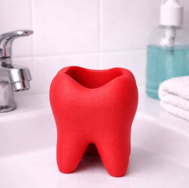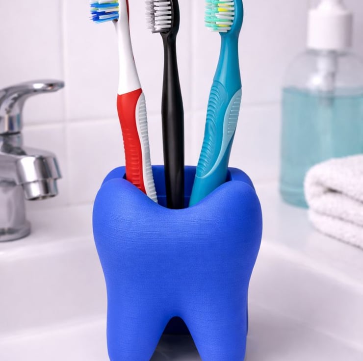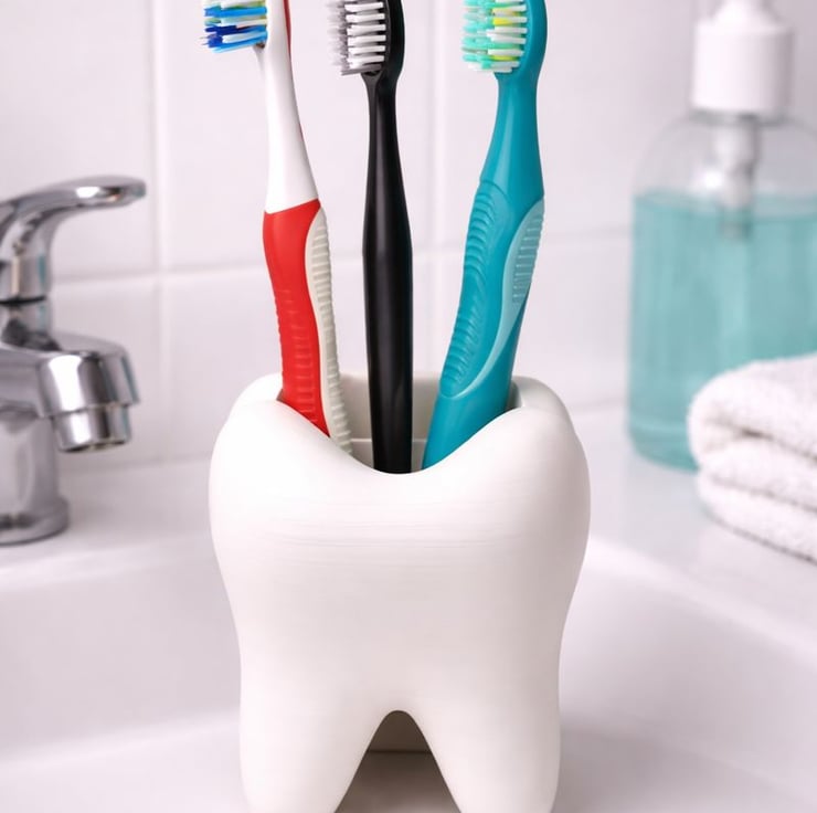 Add a clean, modern touch to your bathroom with this tooth-shaped 3D printed toothbrush holder. Designed to be both practical and eye-catching, it keeps toothbrushes neatly stored while adding a fun, minimalist accent to your sink area.