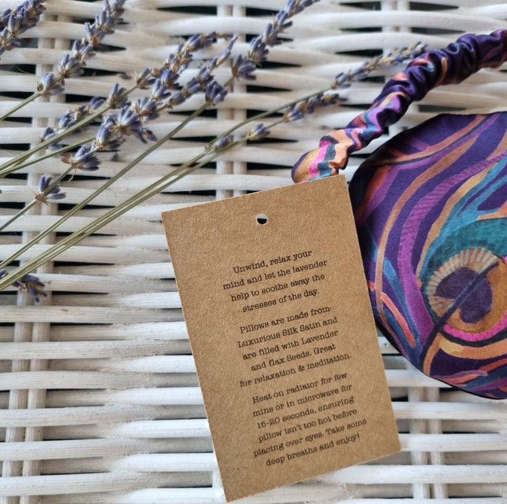 Materials Silk. Cotton. Lavender,Flaxseed & Elastic. Mask can be put in the microwave but only for 15 seconds at a time. Ensure mask is not too hot before placing over eyes.