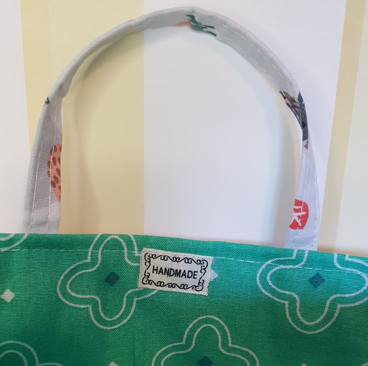 This fun cotton fabric makes a great reusable gift bag for a child. Just pop a little gift inside and they can use the bag for imaginary games too.