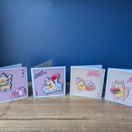 Five blank blue cards with handmade floral design with ladybird inc. envelopes