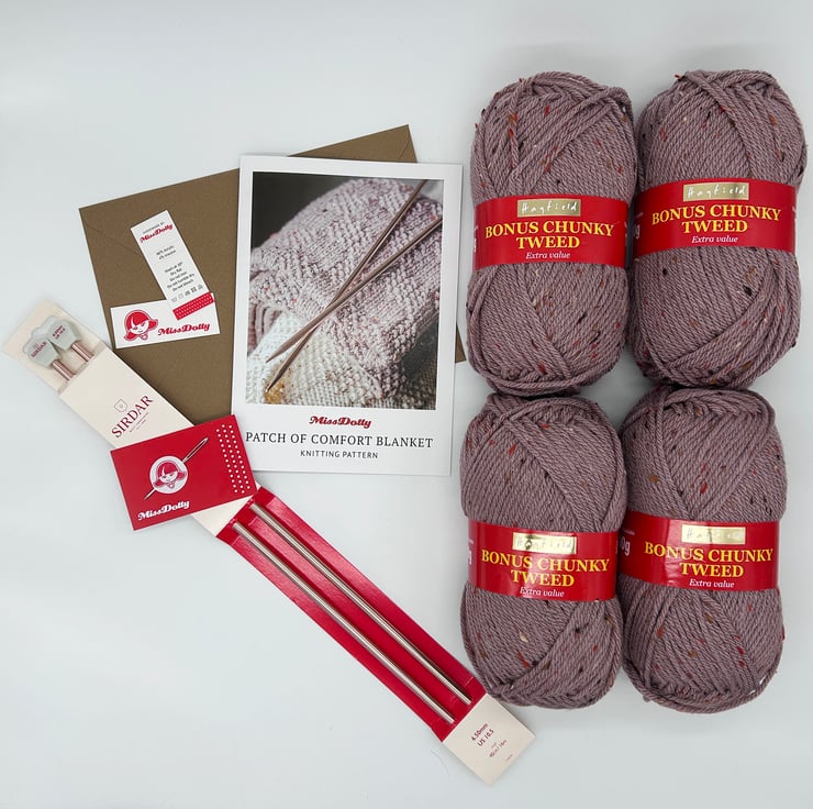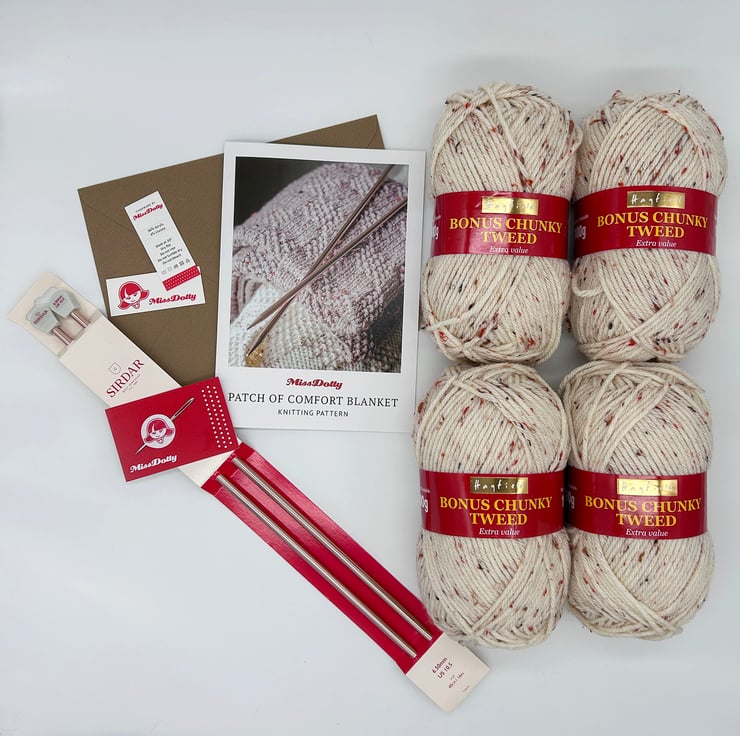 Everything you need to create a cosy handmade blanket, beginner Friendly – comes with an easy-to-follow pattern, perfect for first-time knitters.
