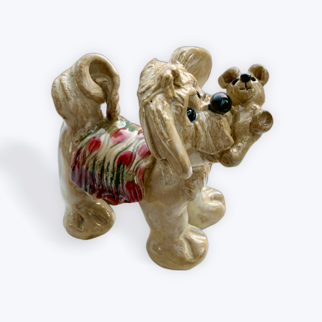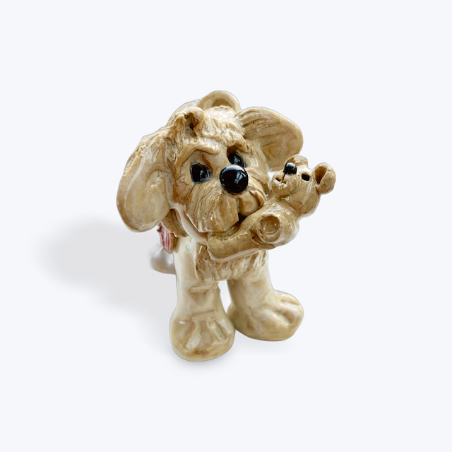 Carrying his teddy bear and wrapped in his tiny coat to keep nice and cosy, this charming dog is full of personality. Those big, soulful eyes are just waiting to steal your heart.