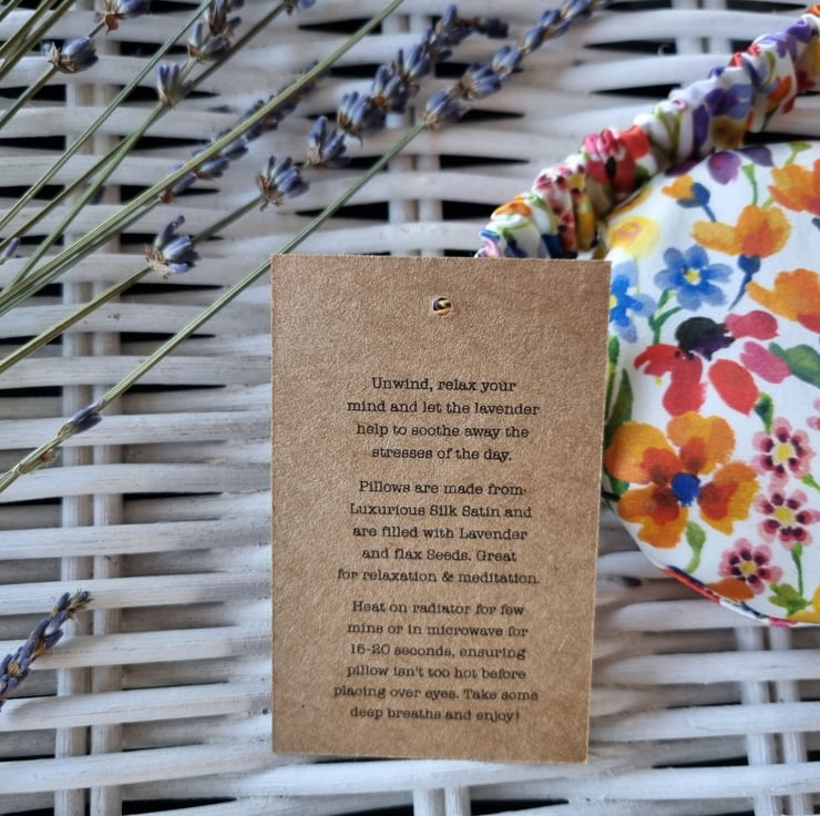Materials Silk. Cotton. Lavender,Flaxseed & Elastic. Mask can be put in the microwave but only for 15 seconds at a time. Ensure mask is not too hot before placing over eyes.