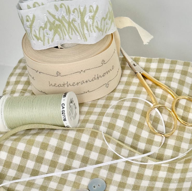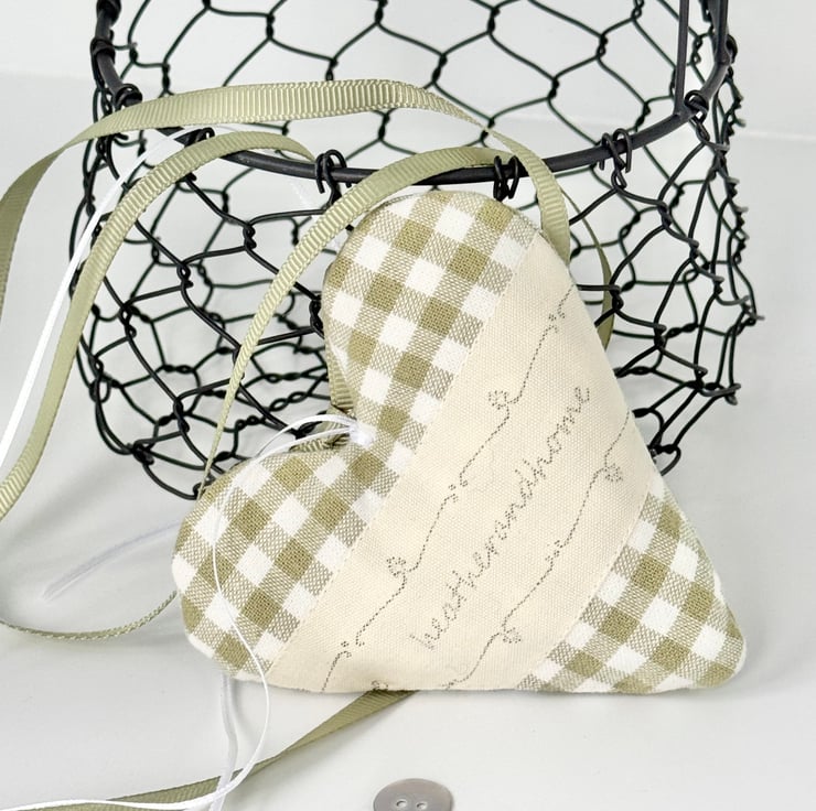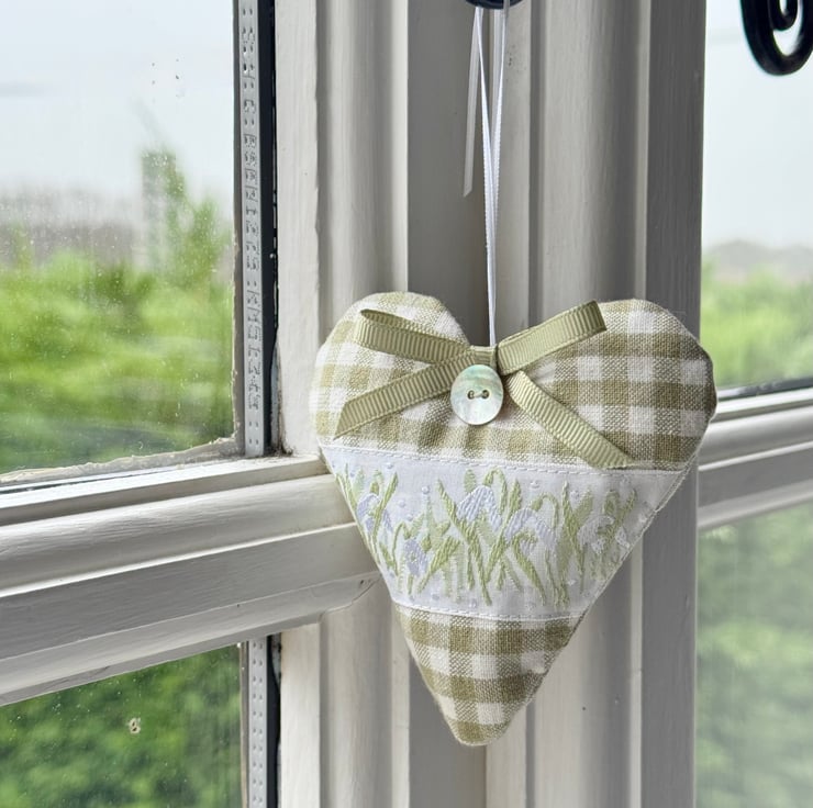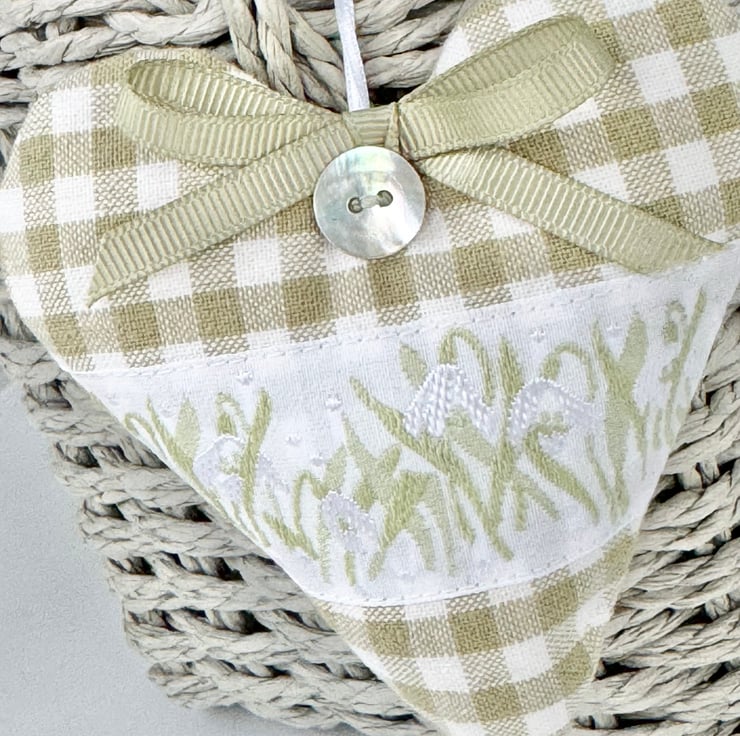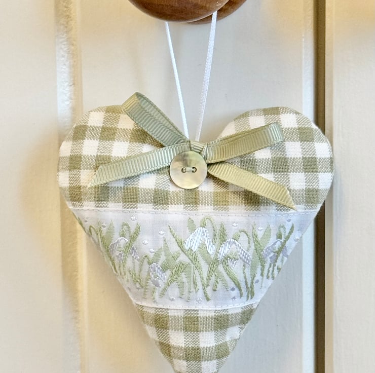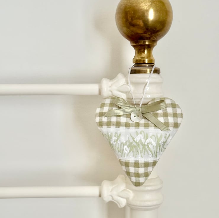 BUT I'm excited to introduce the first of my popular Hearts of the Month. The January Heart is the "New Beginnings Snowdrop Heart" - available in sky-blue stripes and sage-green checks.