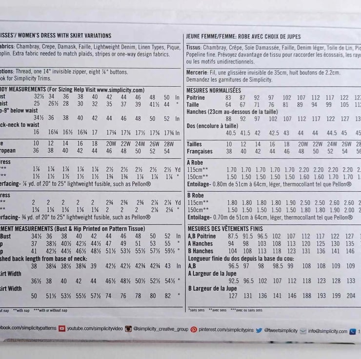 IMPORTANT - as this is a pattern from the US, the sizes will be different from UK shop garments. Please look at the back of the pattern (photo 2) and check your body measurements against the size chart.