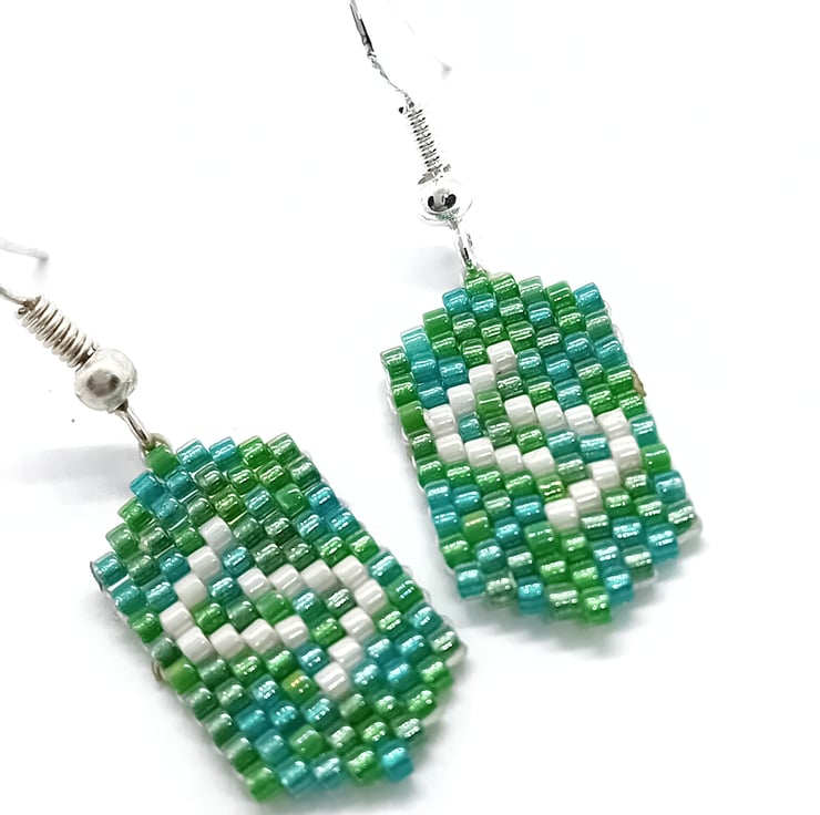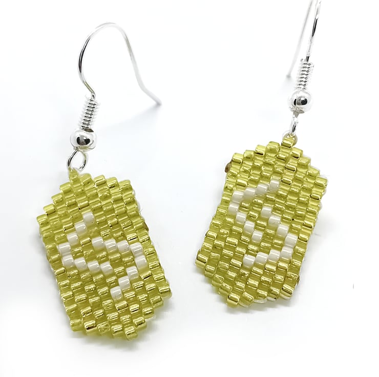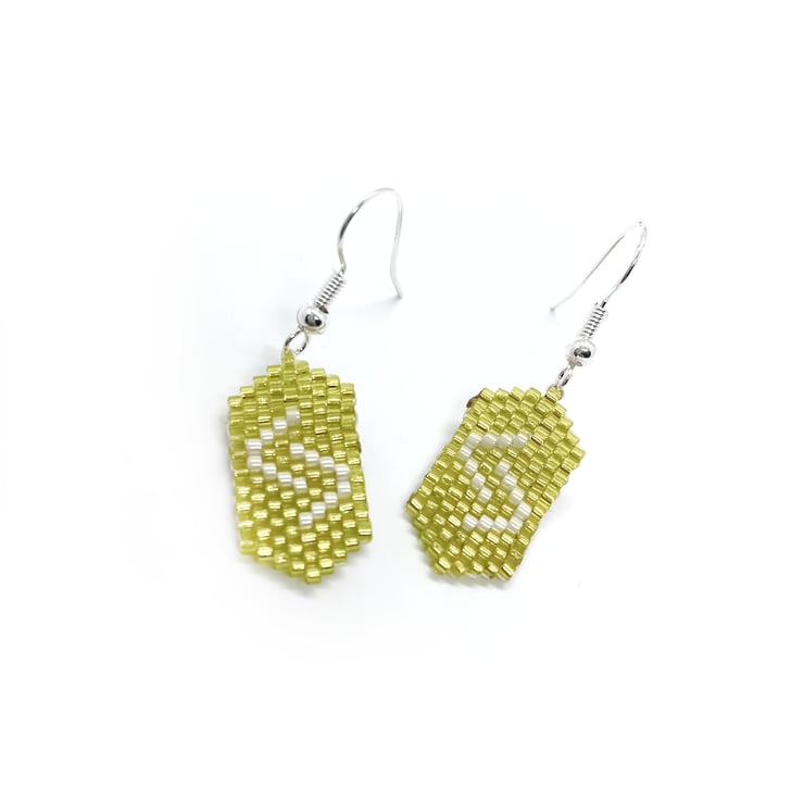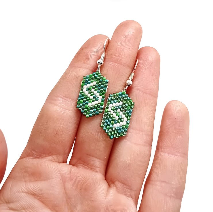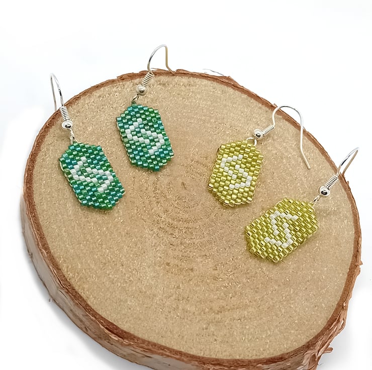 These Jera viking rune beaded earrings have been created using delica beads, beading thread and silver plated ear wires.