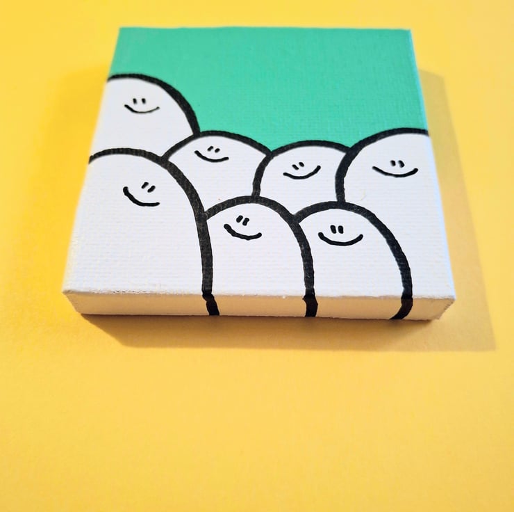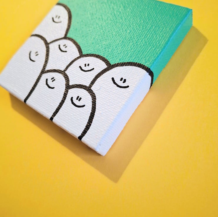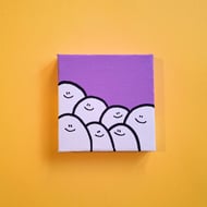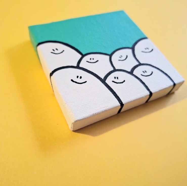 I painted this using acrylic paint, on a mini canvas, measuring approximately 7 x 7cm (2.5" x 2.5"). It can be hung on a wall with a nail, or looks equally nice propped up against a shelf or mantlepiece :)
