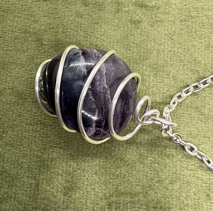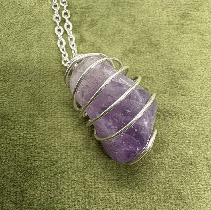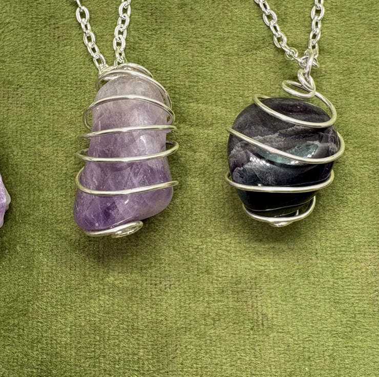 These are simple wrapped semi-precious stones - not everyone likes an intricate wire wrap make, it's more about the stone. These stones have all been spiritually cleansed. These pendants comes with a 20"/50cm silver plated chain with sterling silver fastenings.