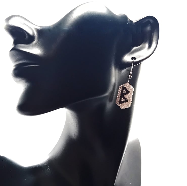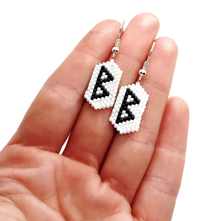 These Berkana viking rune beaded earrings have been created using delica beads, beading thread and silver plated ear wires.
