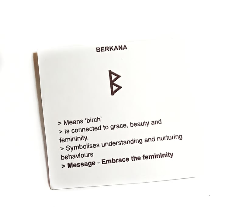Berkana means 'Birch' and it is connected to all powers feminine; grace, strength, nurturing and healing.