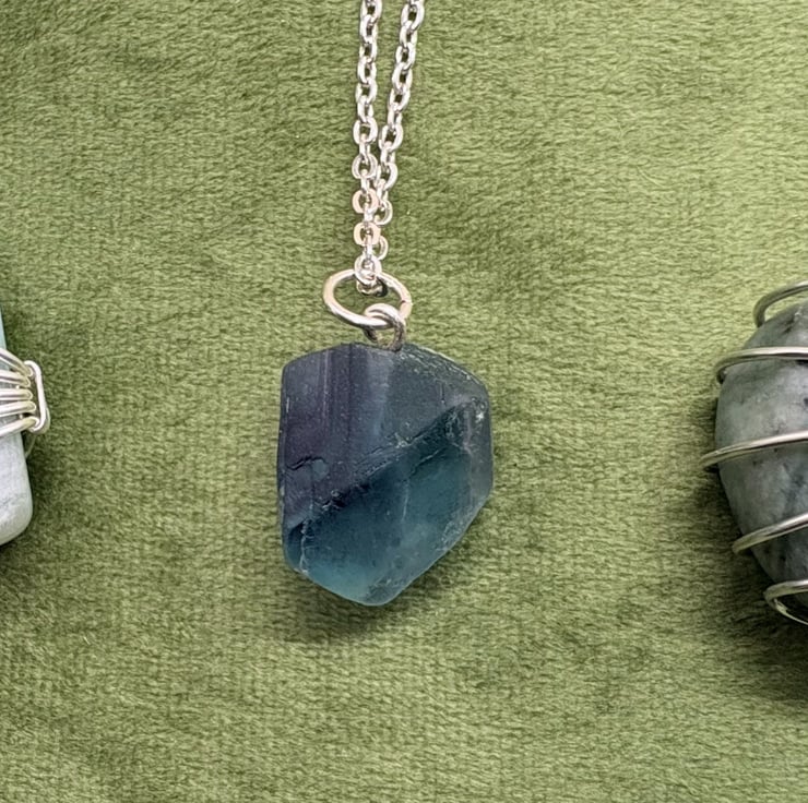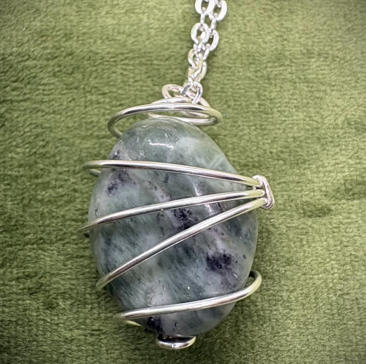 These are simple wrapped semi-precious stones - not everyone likes an intricate wire wrap make, it's more about the stone. These stones have all been spiritually cleansed. These pendants come with a 20”/50cm silver plated chain with sterling silver fixings.
